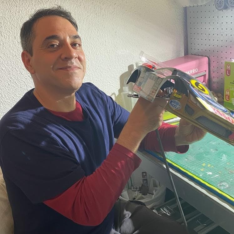 Me he especializado en pintar carrocerías de coches de radiocontrol a escalas de 1/24 a 1/8. Son de lexan transparente que se pintan desde el interior. Suelo hacer diseños que me piden y réplicas de coches que fueron muy conocidos.